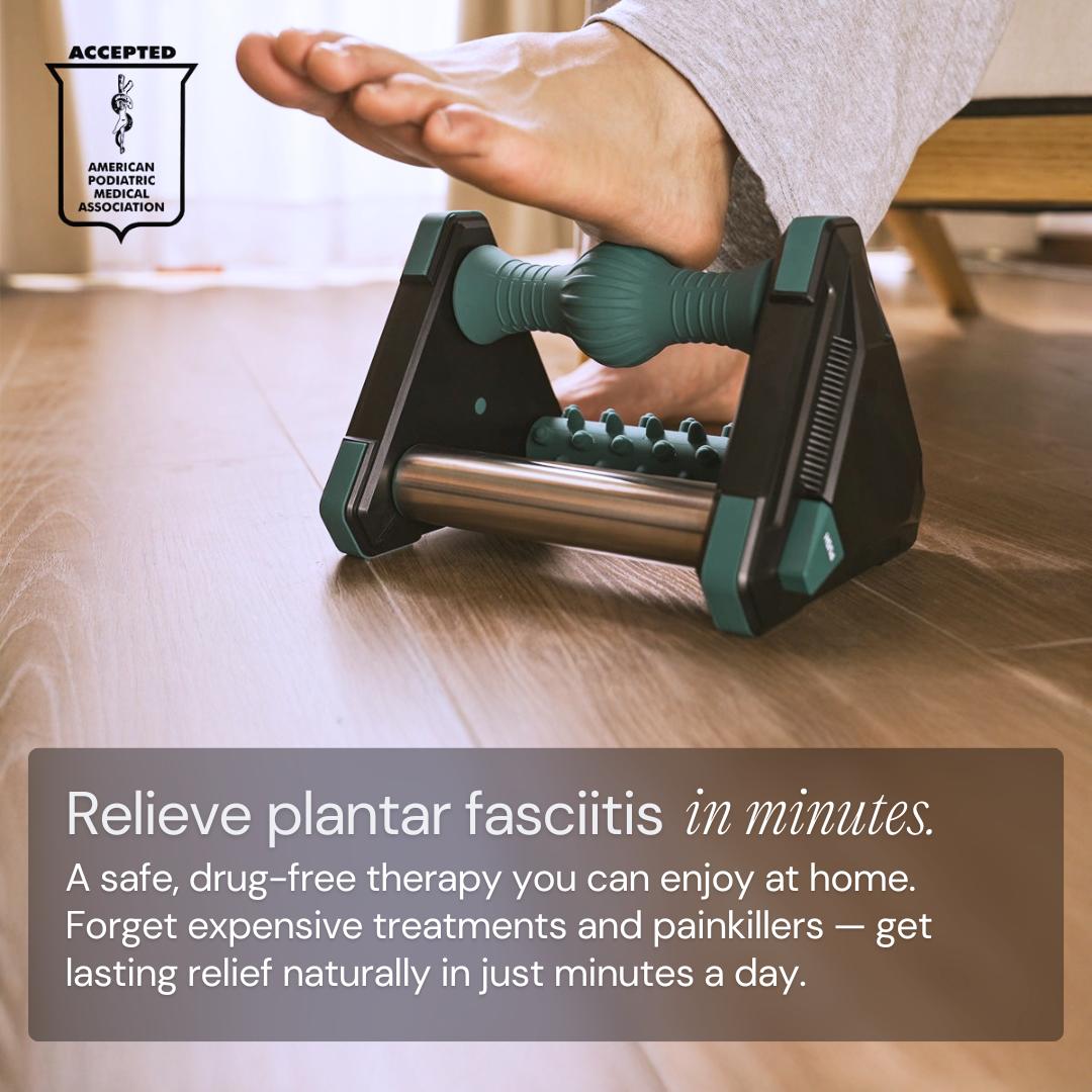 Long runs, hard surfaces, and tight running shoes put constant strain on your plantar fascia — the ligament that supports your arch. Over time it tightens, pulls against the heel, and traps nerves, turning every step into sharp post-run pain. That’s why plantar fasciitis leaves runners with stabbing heels, aching arches, and heavy feet that make recovery slow and frustrating.